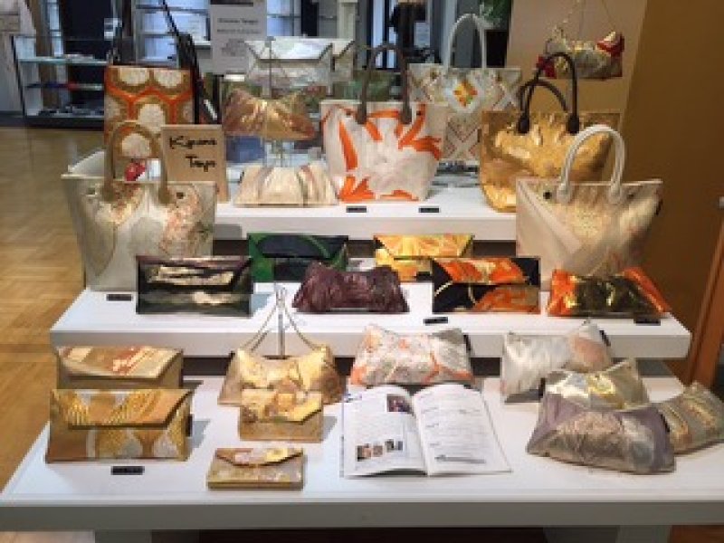 Kimono Tangoは、京都西陣をメインに、全国の織物の着物や帯をリメイクしてバッグや財布などの小物を制作されています。