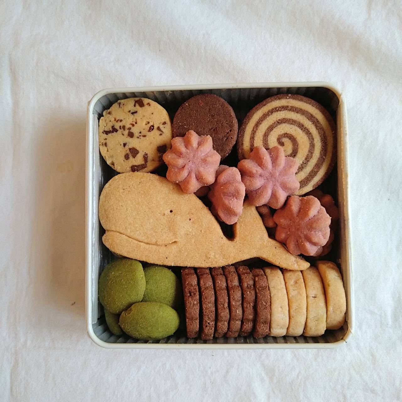 缶をあけると、かわいらしいくじらの型抜きクッキーが。